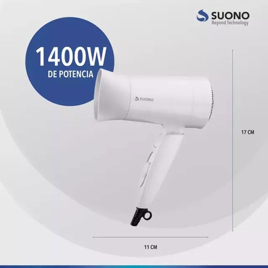 Secador De Pelo Suono Acc0090 Blanco Plegable 1400W 220V