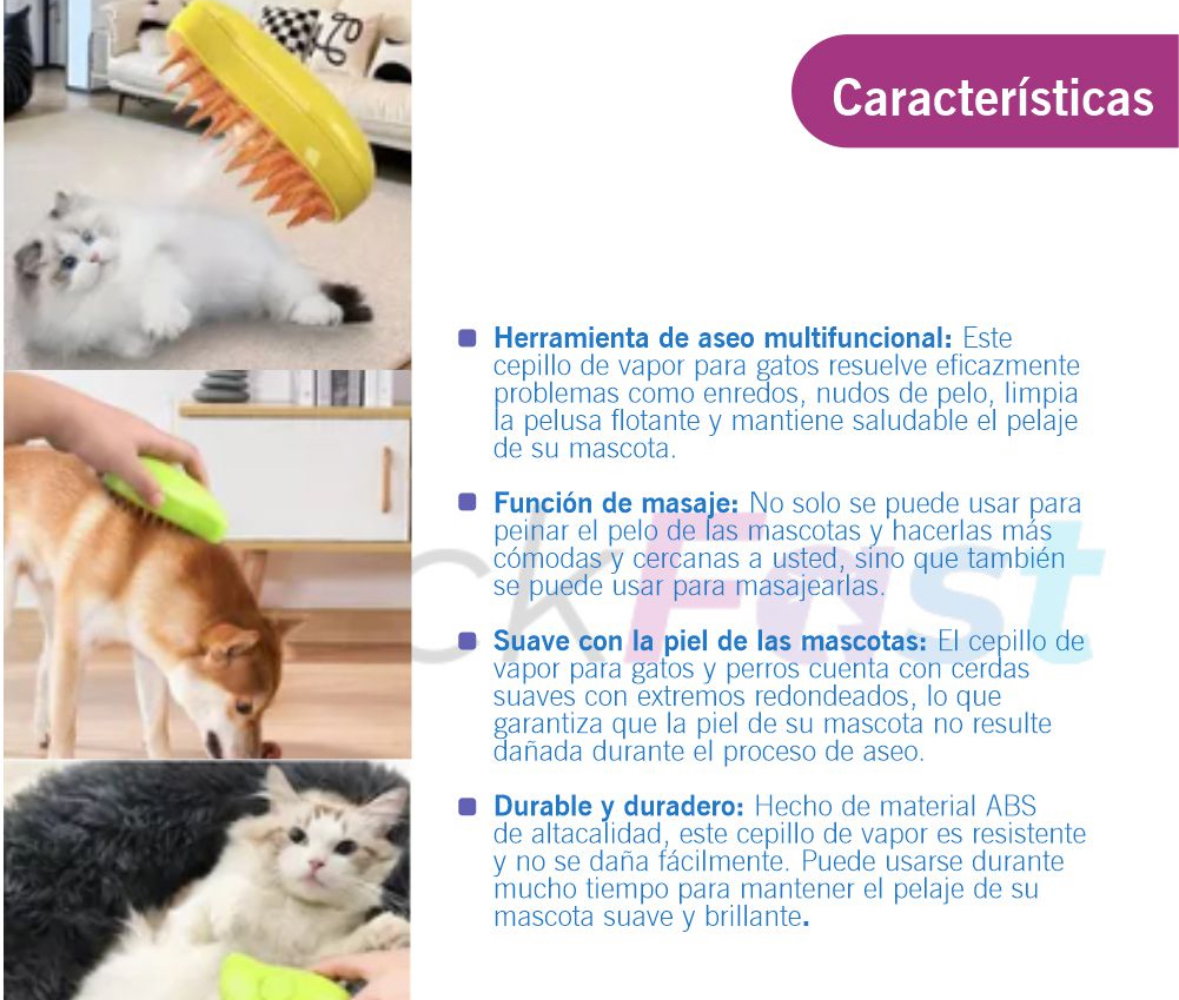 Cepillo Automatico A Vapor Perros Quita Pelos Gatos Mascotas