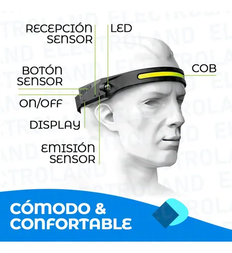 Linterna Vincha Minera Luz Recargable Usb Con Sensor 2 Luces