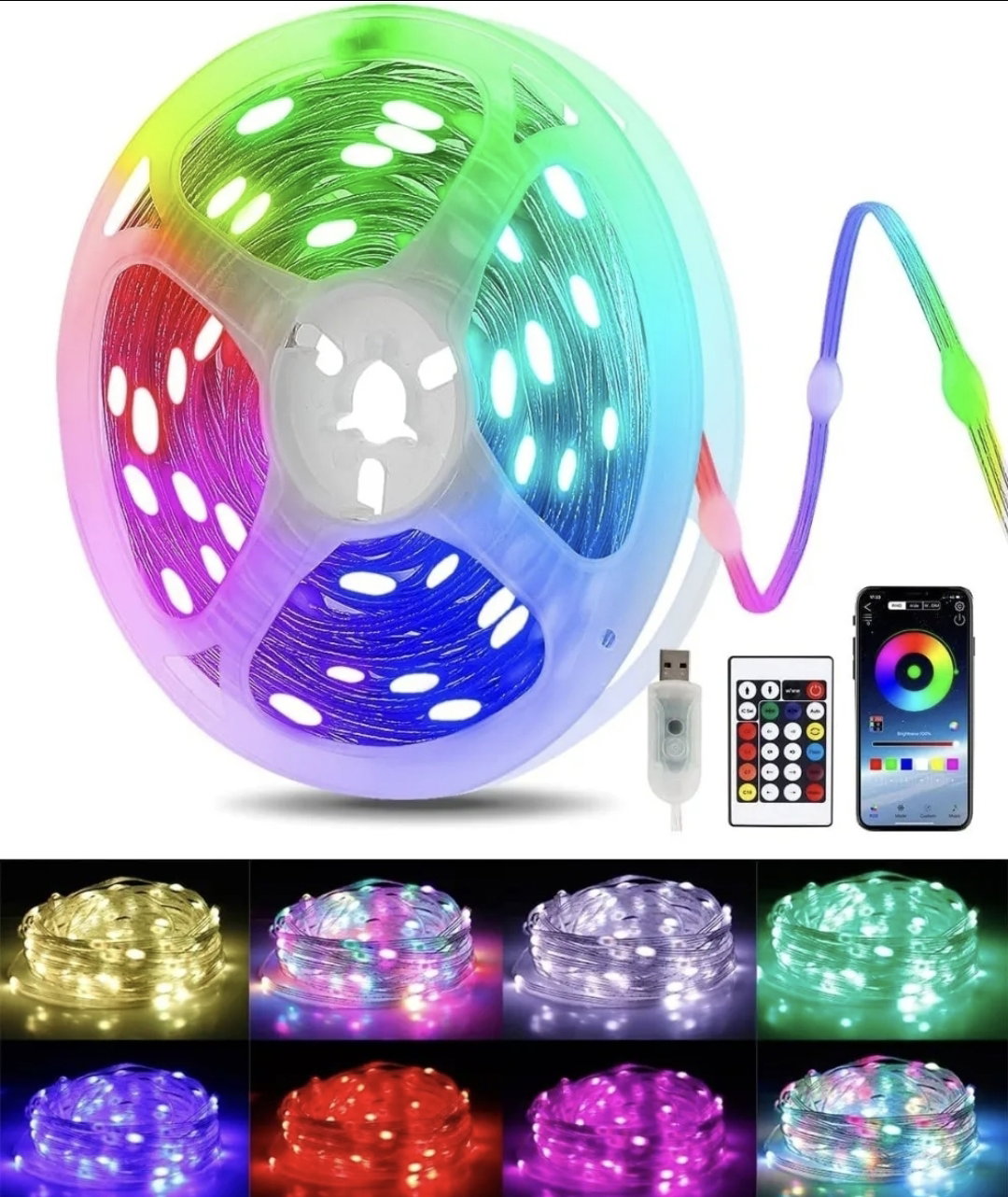 Kit Completo de Guirnalda Alambre Led Pixel Usb Rgb de 10 Metros Audioritmica Bluetooth Sumergible. Fabricada con materiales de primera calidad que le brindan gran resistencia y durabilidad. Controlable desde el Celular escanenado el Código QR de la Controladora Bluetooth. La más completa Tira Led que le permitirá variar entre la alta gama de colores y efectos. Sumergible en Agua gracias a su Grado de Protección IP67. Para uso de Interiores / Exteriores.