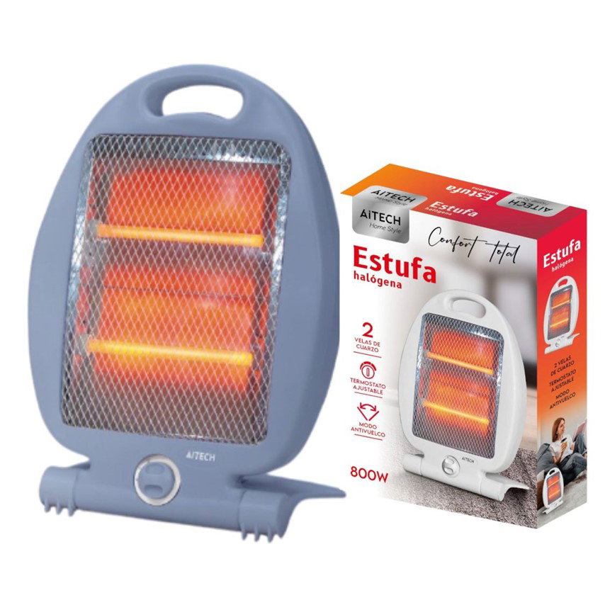 ESTUFA HALÓGENA 800W AITECH 2 VELAS DE CUARZO GRIS ALTA CALIDAD