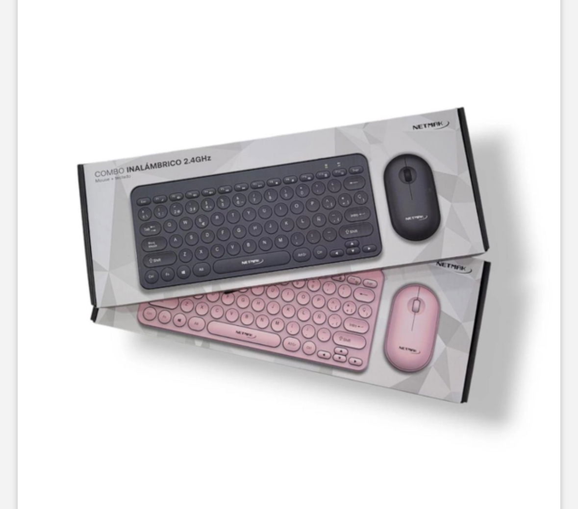 Kit Teclado Y Mouse Inalambrico Combo Pc Tv Usb Netmak Kb850 Mouse Rosa Teclado Rosa