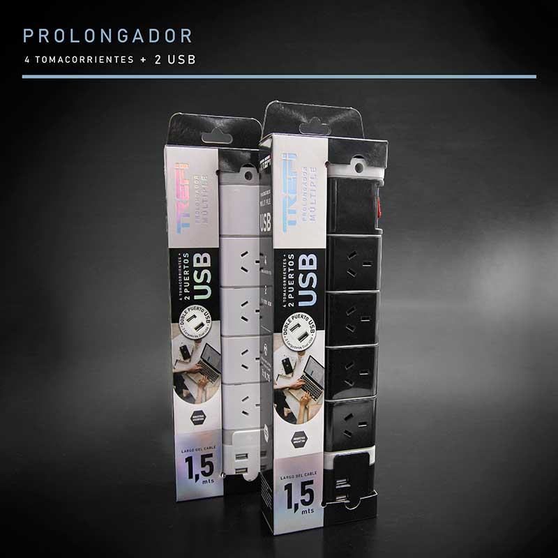 ⚡ZAPATILLA 220V TREFI (4TOMAS + 2USB) 1.5M