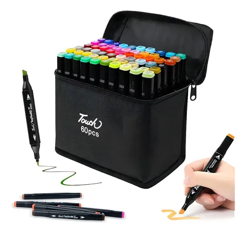 Marcadores Fibras Doble Punta 60 Piezas Estuche Portátil Arte