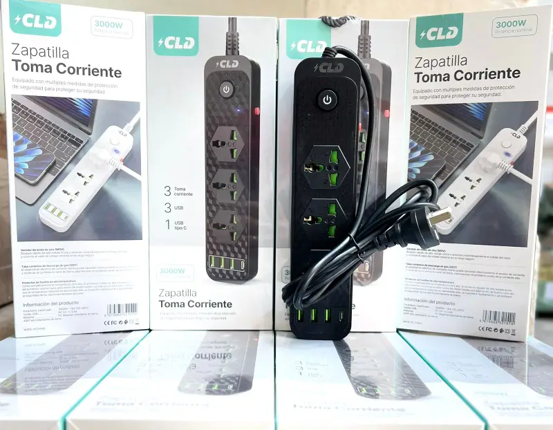 Zapatillas CLD con 3 tomas de corriente internacionales más 3 usb mas 1 Usb C