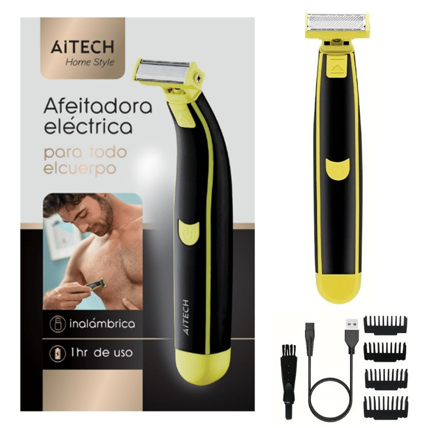 Afeitadora Electrica Aitech Para Todo El Cuerpo Con Accesorios Uso Multifuncional En Humedo Y Seco Negra