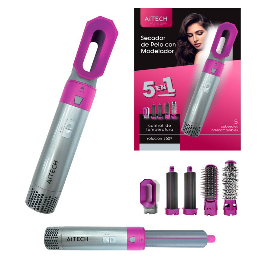 Multi Styler Aitech 5 En 1 Seca, Modela, Alisa, Riza Y Da Volumen Rotación 360° Y Control De Temperatura